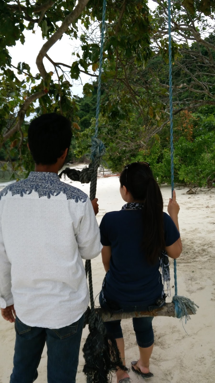 Saya Cuma liburan dipinggir pantainya aja yang putih, lembut, dan air yang